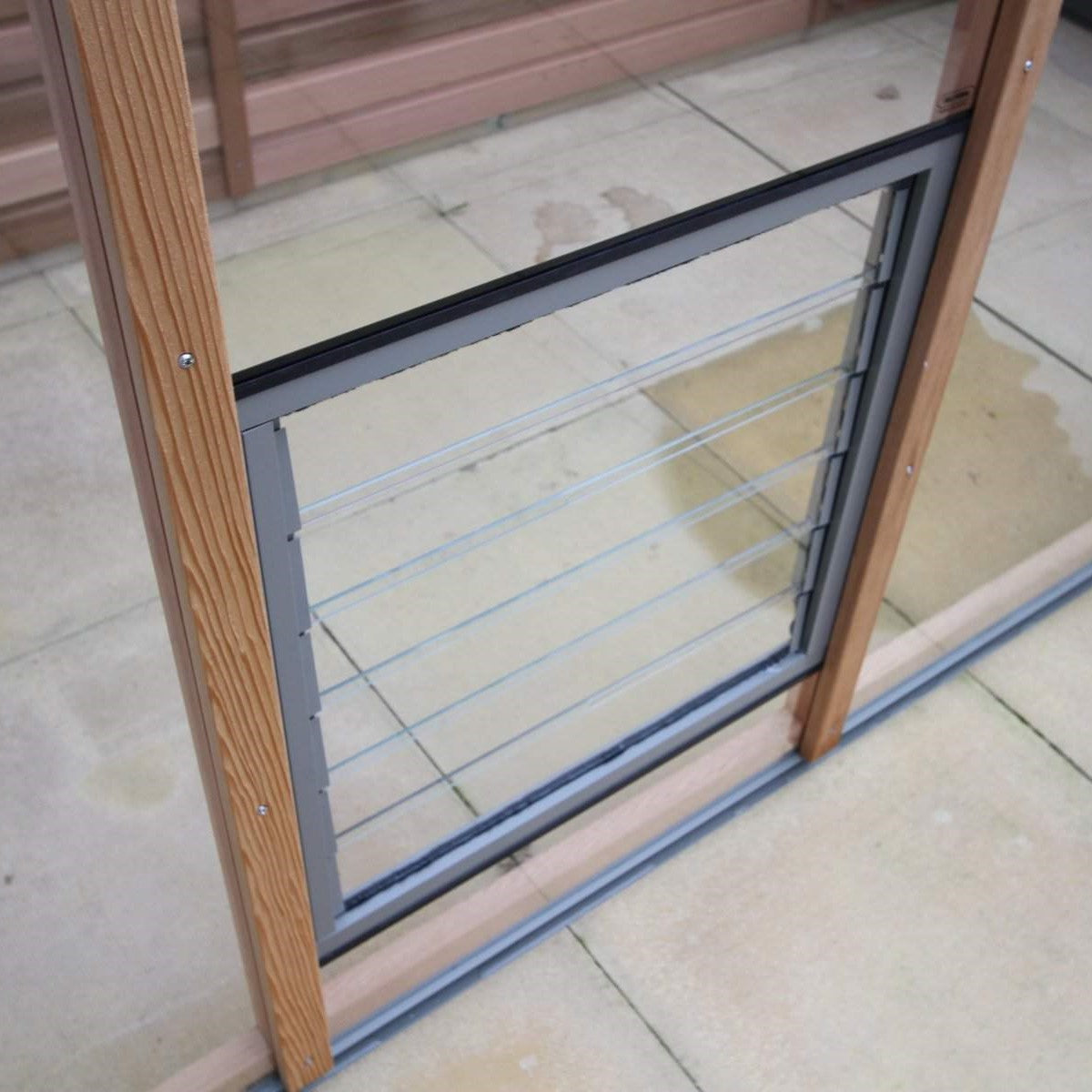 The Alton Greenhouse includes one or more louvre windows, designed to work with the roof vents. As warm air escapes through the roof vents, cooler air is drawn in through the louvres, enhancing airflow. Positioned near the bottom, top, side, or rear, they come with manual openers but can be upgraded to automatic.