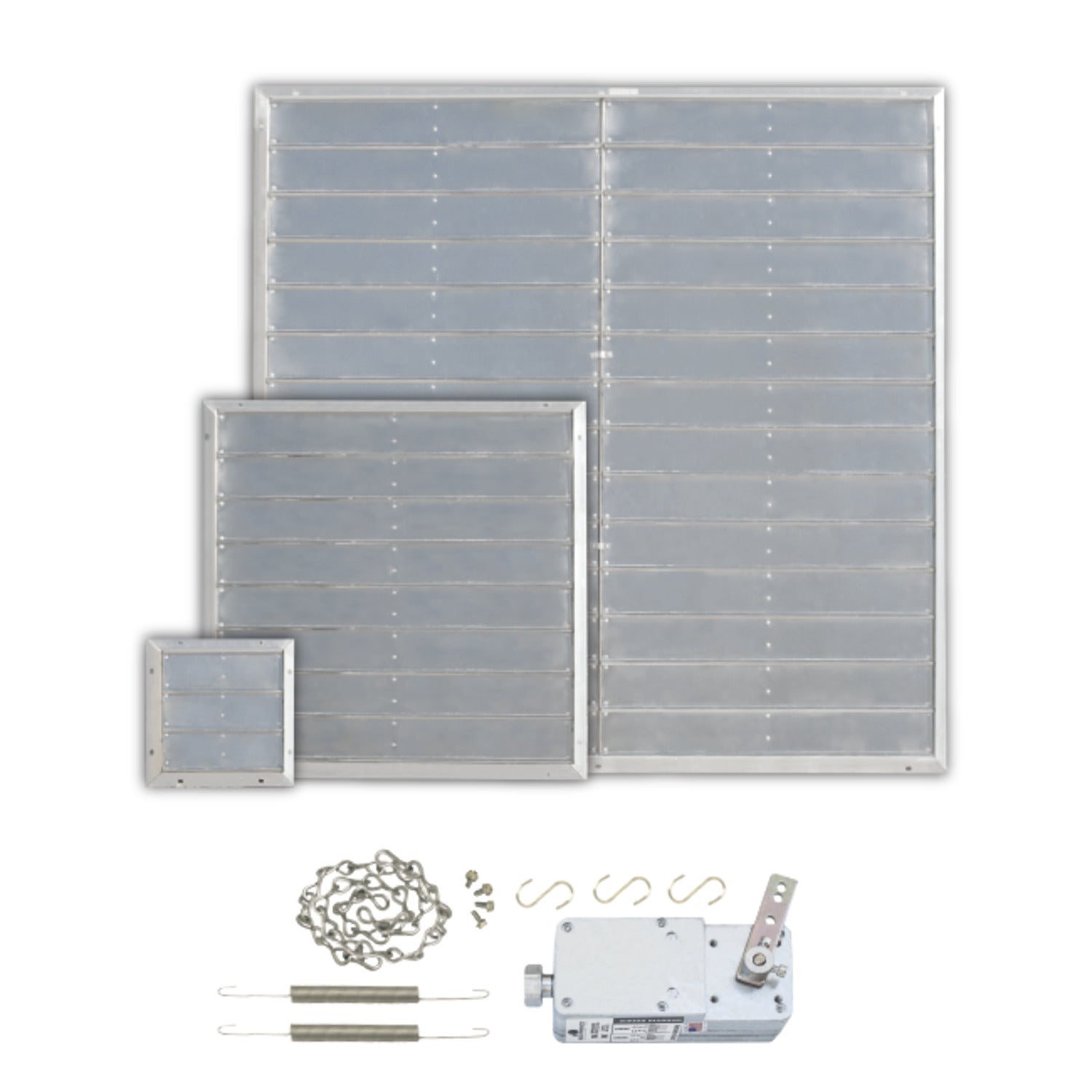 The Air Intake Vent with Shutter, for use in conjunction with an exhaust fan, allows controlled airflow through your greenhouse. May also be used as a free-air exhaust.