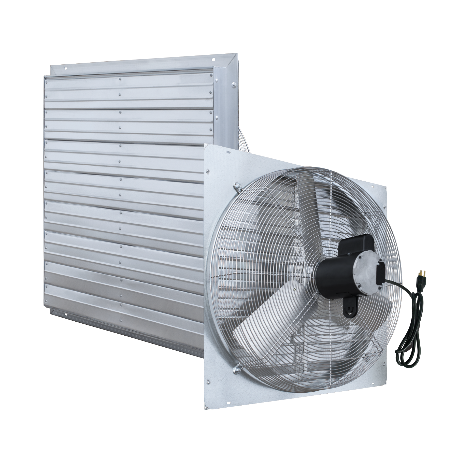 The Exhaust Fan with Shutter is a durable agriculture grade exhaust fan perfect for barn and building peaks, greenhouses, warehouses, and more. Shutter Fans come pre-wired with a cord and 3-prong plug for "No Electrician Needed" installation. Fans ship fully assembled out of the box so you're up and running in no time!
