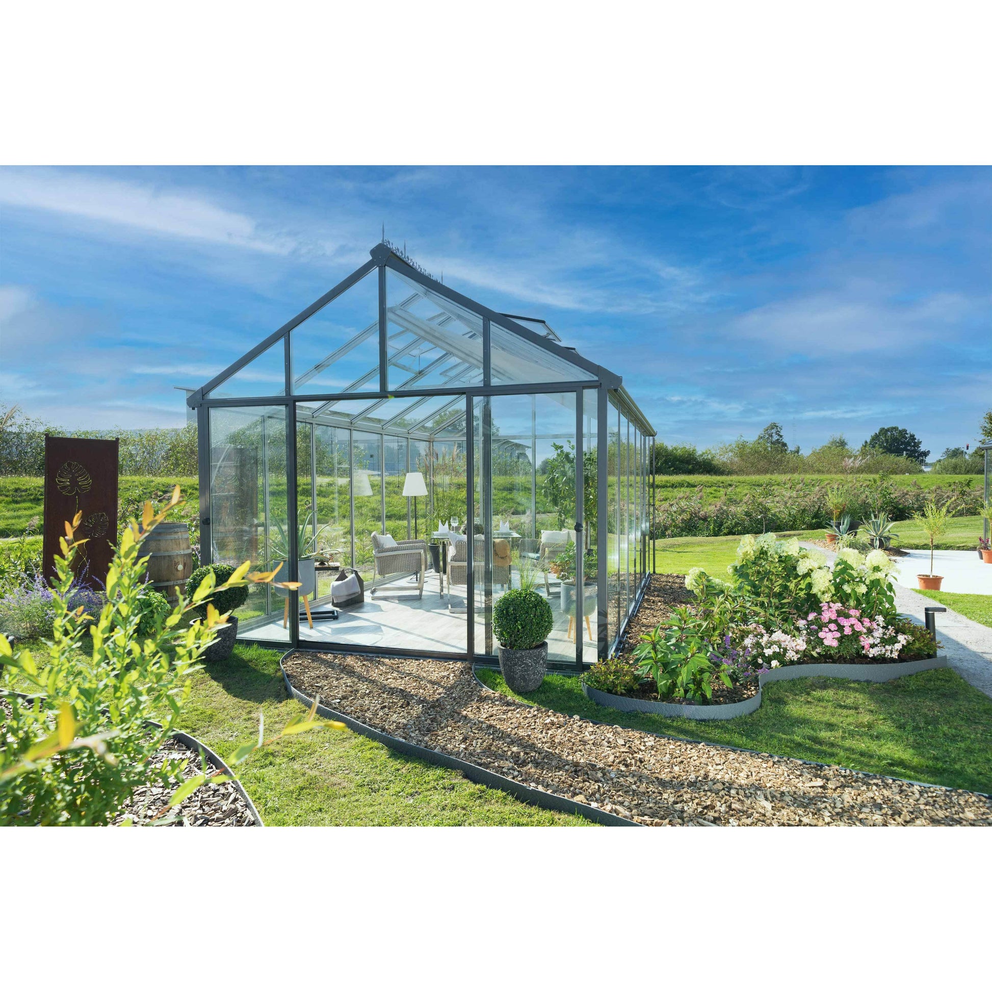 The Livingten Insulated Glass Greenhouse by Hoklartherm is designed to provide the optimal environment for your plants while minimizing energy consumption. Featuring 22 mm thick double-pane gas filled insulated glass panels, this premium greenhouse ensures excellent temperature control throughout the year. The thermal-insulated aluminum profiles, also known as "cold barriers," act as a secondary insulating component, creating a highly efficient greenhouse system, which can alternatively be used as an outdoor pavilion for relaxing and entertaining. Say goodbye to temperature fluctuations and hello to a thriving garden in any season.