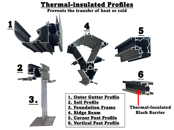 - Aluminum Structural Profiles: all Thermal Insulated - "cold-wall" barrier