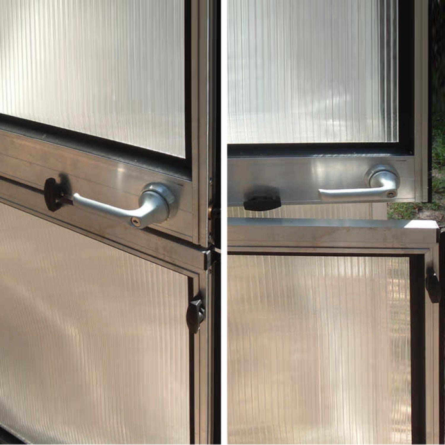 The RIGA 4 Greenhouse is outfitted with the German made 8mm twin-wall polycarbonate glazing that diffuses sunlight into the greenhouse evenly to provide optimal conditions for the plants to grow faster and to prevent sunburn on the plants. The greenhouse is sealed to maximize its insulation in the cold season so you can grow and harvest in this greenhouse all year round. It is, by the European definition, designed to be used to grow fresh vegetables, herbs, and flowers even in the middle of winter, not just as a seasonal extender to be used when only a slight night frost might be expected during the spring or fall season. This impressive greenhouse can flex to your gardening needs throughout the year.