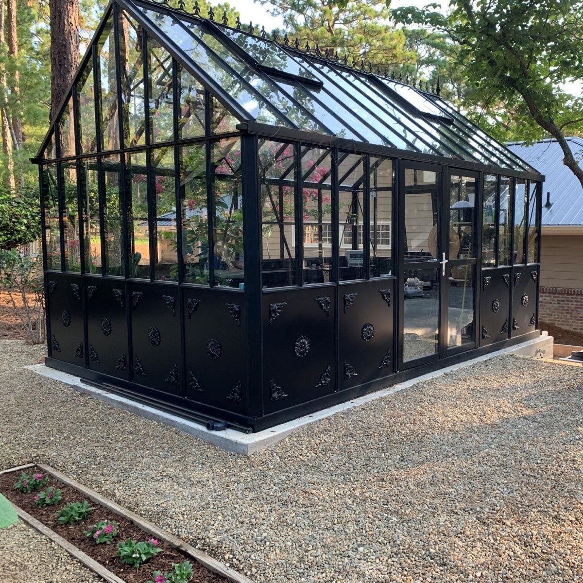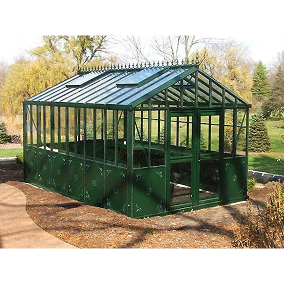 The classic Victorian look and architectural integrity is enhanced by narrow 14" tempered glass panels and decorative lower wall panels all the way around. The high-quality aluminum profiles ensure years of maintenance-free enjoyment. It is perfect for use as a full-featured greenhouse, a whimsical fun outdoor entertainment space, a cozy jacuzzi house, a sunroom, or a pool cover.
