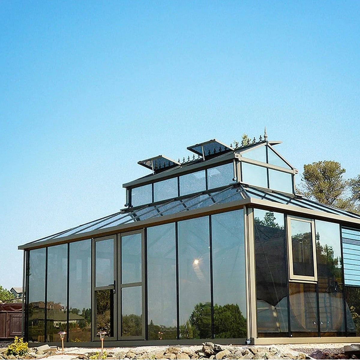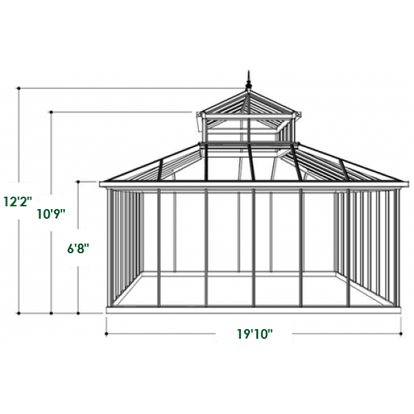 The Janssens Cathedral Victorian Glass Greenhouse is a versatile, spacious, feature packed addition to any garden or backyard. The large floor size (15x15, 15x17, 15x20 (baseline), 15x22, 15x25, 15x27, or 15x30), tall sides, and extended roof cupola section allow space for all of your plant growing needs, or use it as a hot tub cover or outdoor sunroom.