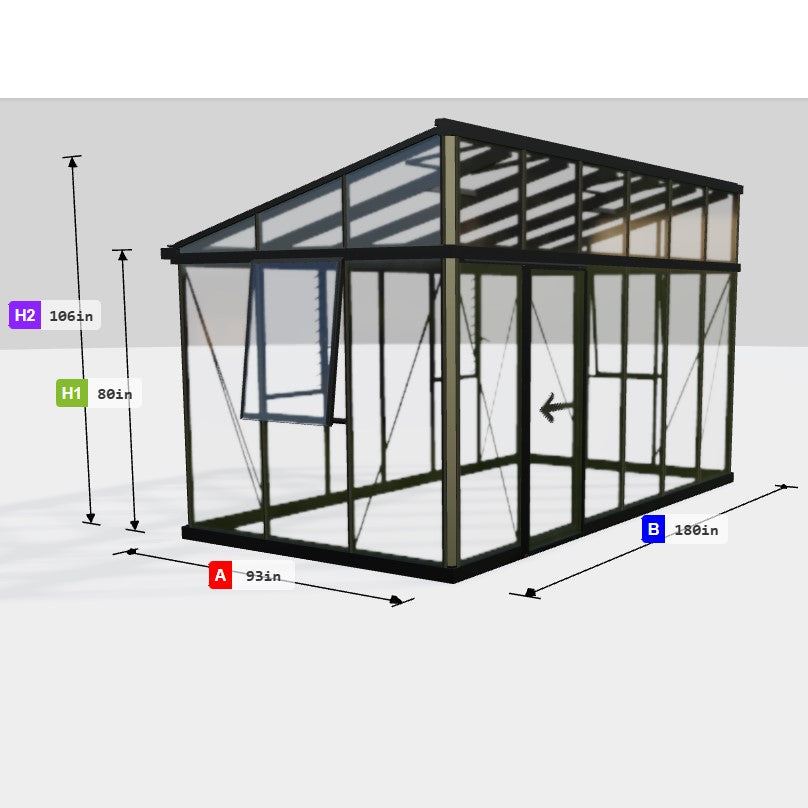This beautiful greenhouse is highly customizable by special order - size, glazing material, frame color, roof and wall features such as doors, panels, and windows. Call us at 888-648-5333 to arrange a free design session to configure your dream version!