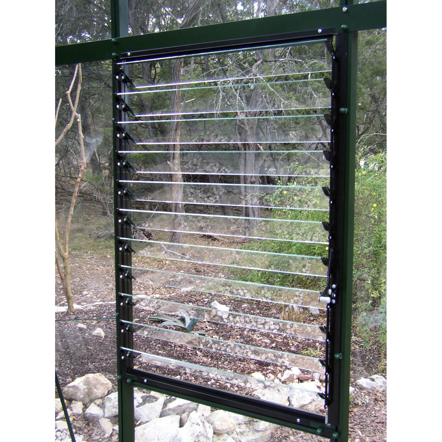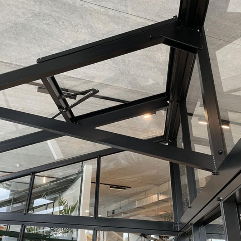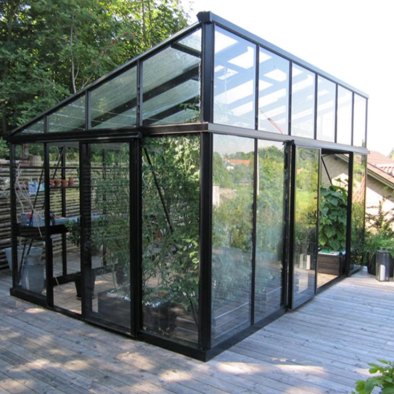 To support the longer roof glass panels of this unique glass greenhouse design, the aluminum roof rafter/profiles are twice as thick as our normal profiles. All standard units also include additional triangle cross supports. The strong frame combines with the 4mm tempered safety glass construction make for a very durable, long lasting structure with little maintenance. Additional optional triangle supports can be added to further increase the roof strength.
