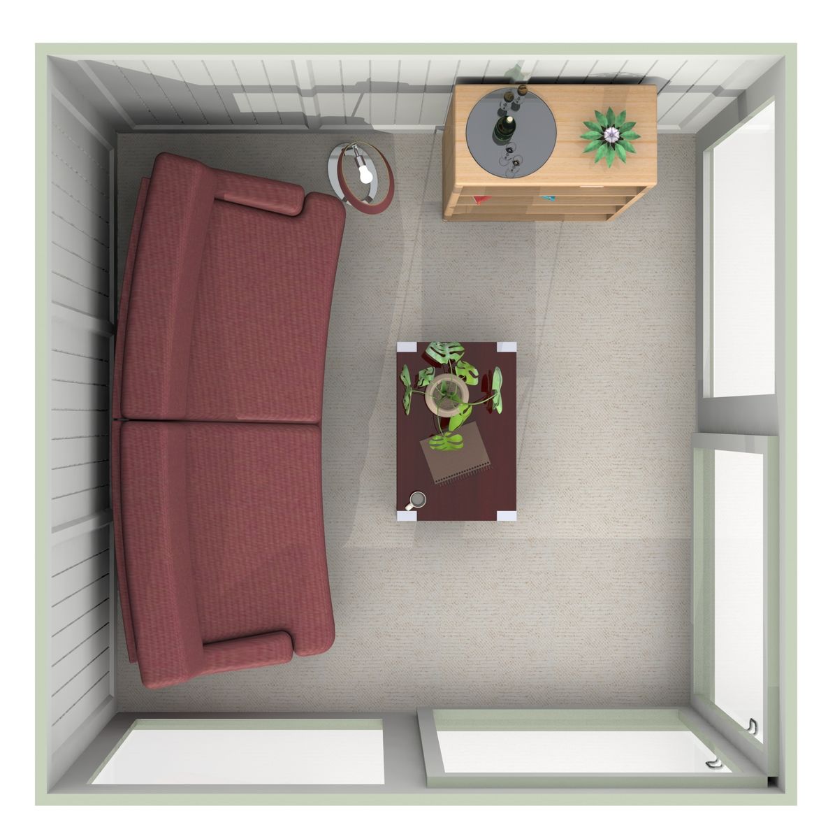 - Two solid walls / two sliding door walls