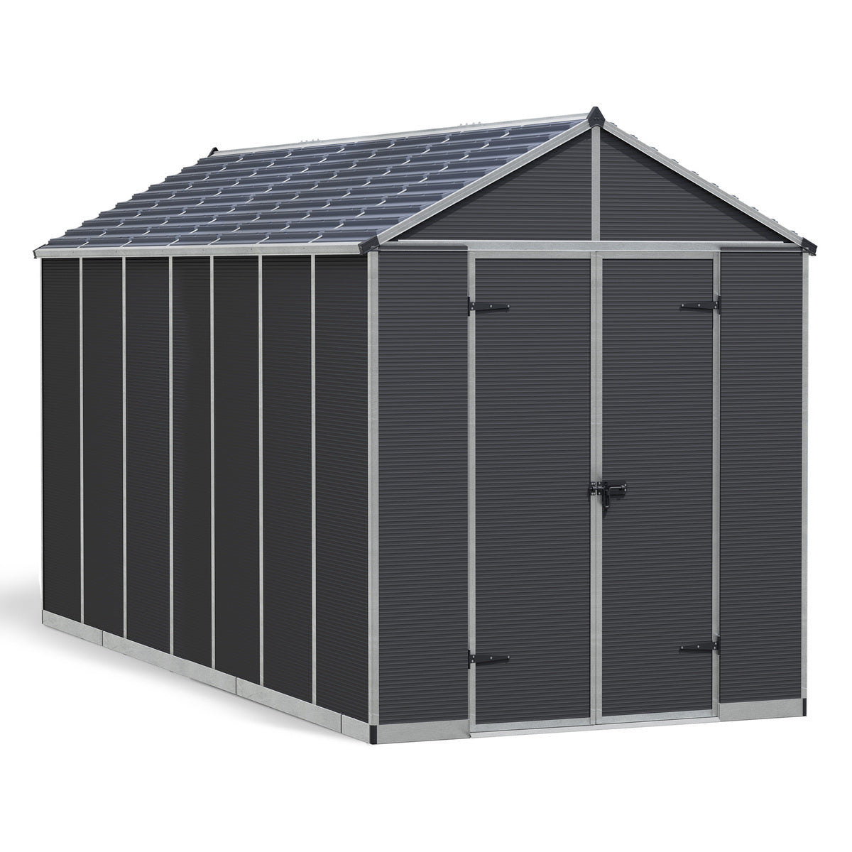 The Rubicon Shed is the durable choice for storing, organizing, and protecting your outdoor life. Made with Canopia's virtually unbreakable multiwall polycarbonate panels and reinforced aluminum frame, the garden shed is a standout for its robustness and durability. It requires little to no maintenance, ensuring years of protection.