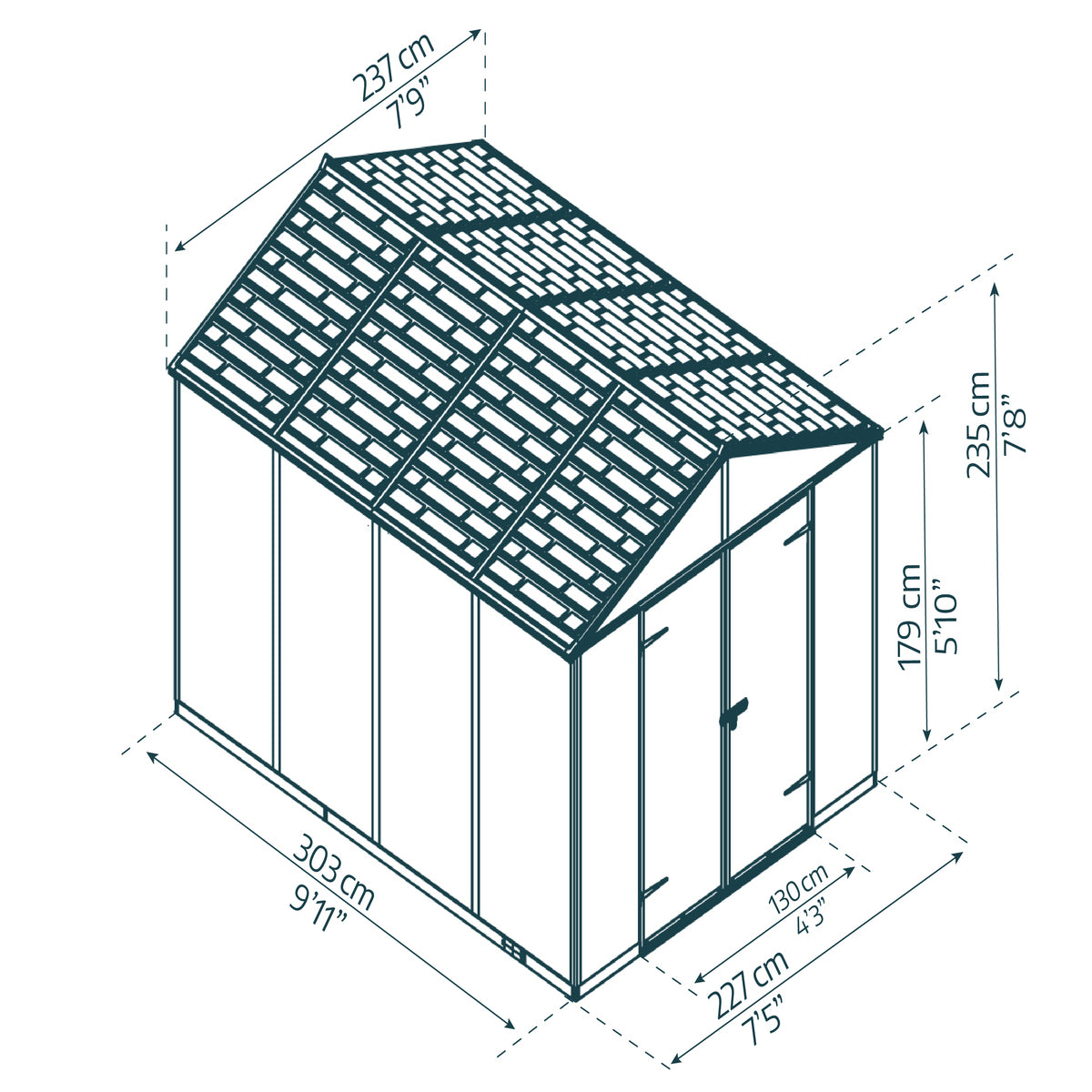 - Multiwall Panels: The 10 mm multiwall fortified polycarbonate panels enhance shed insulation, do not bow, or sag in extreme heat or break in extreme cold. The panels maintain their integrity over time, resisting humidity, fungal decay, and termites.